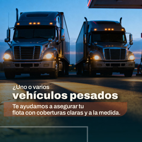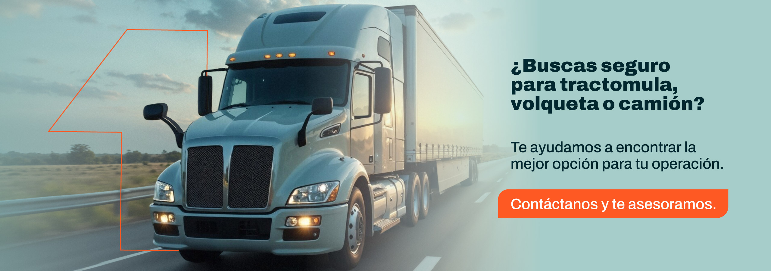 Protege tu flota de camiones, tractomulas y maquinaria pesada frente a riesgos como accidentes, robo, pérdida total o parcial, y daños a terceros.